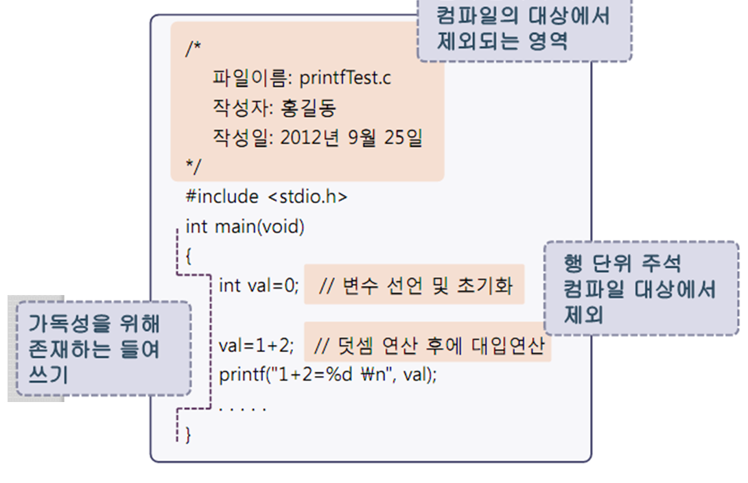 아래의 코드를 작성하여 'comment.c'로 저장한 후 실행해보세요.
