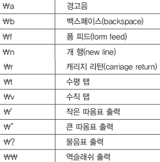 - 문자열의 중간에 삽입되어 출력형식을 정하는 문자이다.